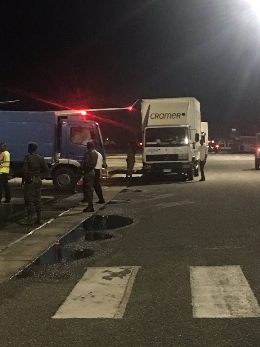 Bullion vans on the tarmac now leaving d airport with heavy security escort.Soldiers & police all around the airport